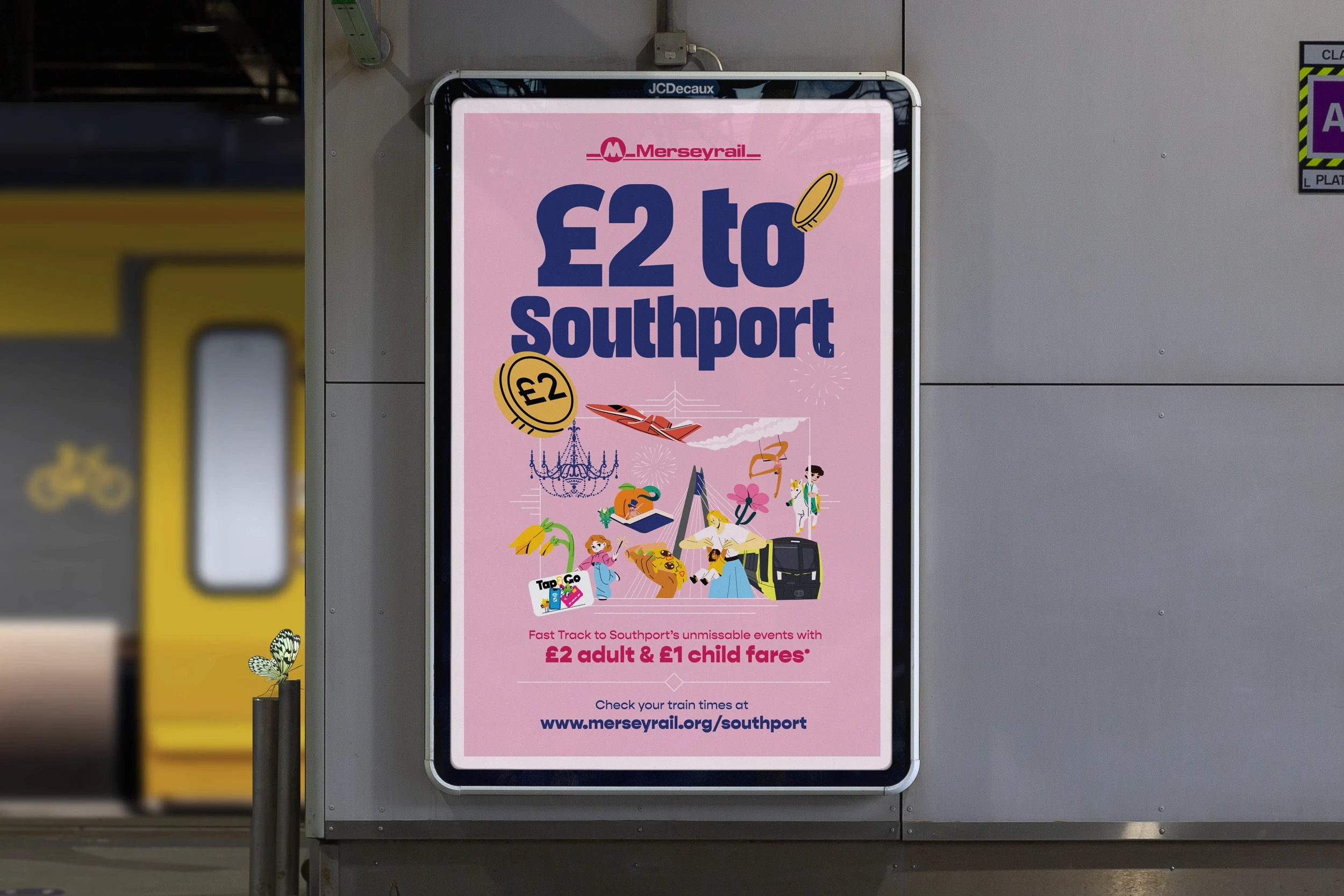 We won a competitive tender to deliver Merseyrail’s 2026 seasonal campaign programme, a wide-ranging brief spanning multiple phases across the year, alongside supporting activity for Southport.